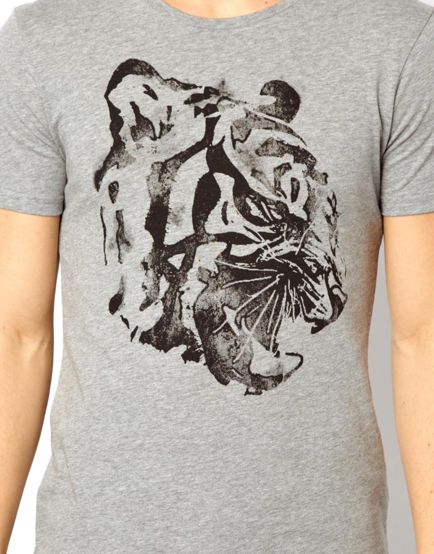 La raison d’être de ce magazine est principalement de décrire des tendances mode et de tenter d’expliquer ce qu’elles disent de notre époque. Dans les collections homme de cet été 2014, je constate qu’énormément de marques proposent des imprimés représentant une tête de tigre. Des photos de tigres ou des dessins, réalistes ou stylisés. Principalement sur des T-shirts. Pour une fois, j’ai beau chercher, je trouve pas d’explication. Si ce n’est que de nouvelles techniques d’impression permettent un meilleur rendu. Une mode aux motifs animaliers en général cet été. Peut-être une idée qui a germé dans la tête de créateurs après qu’ils aient vus Roar de Katy Perry. En voici quelques autres un peu tirées par les cheveux : Un engouement pour les félins en général, surtout pour les chats. Selon l’association animal futé et l’étude Faco/TNS sofres, le nombre de chats a augmenté de 4,11% en un an (en 2012). 27% des foyers français possèdent au moins un chat. C’est surement dû à tous les lol cats d’Internet. Un chat c’est un tigre en miniature. Ensuite en cette fin de crise économique, le tigre est nous ;)) J’arrête là, la tentative d’explication…