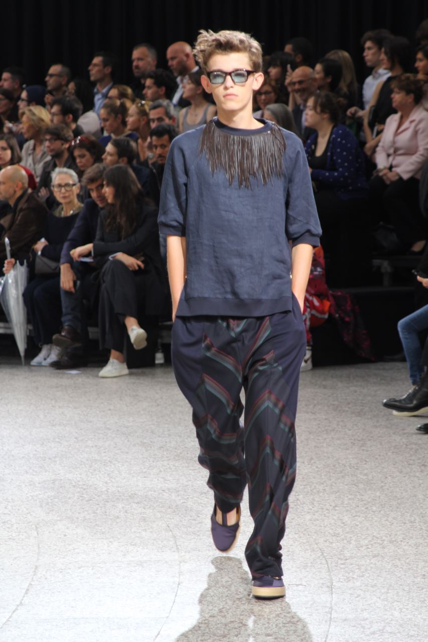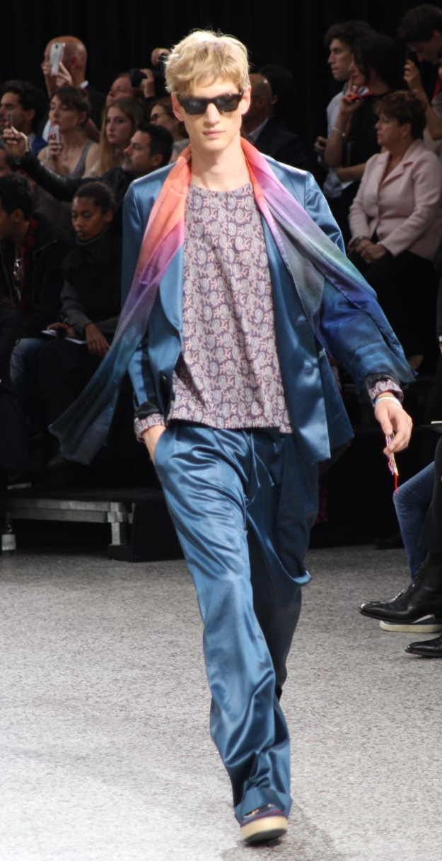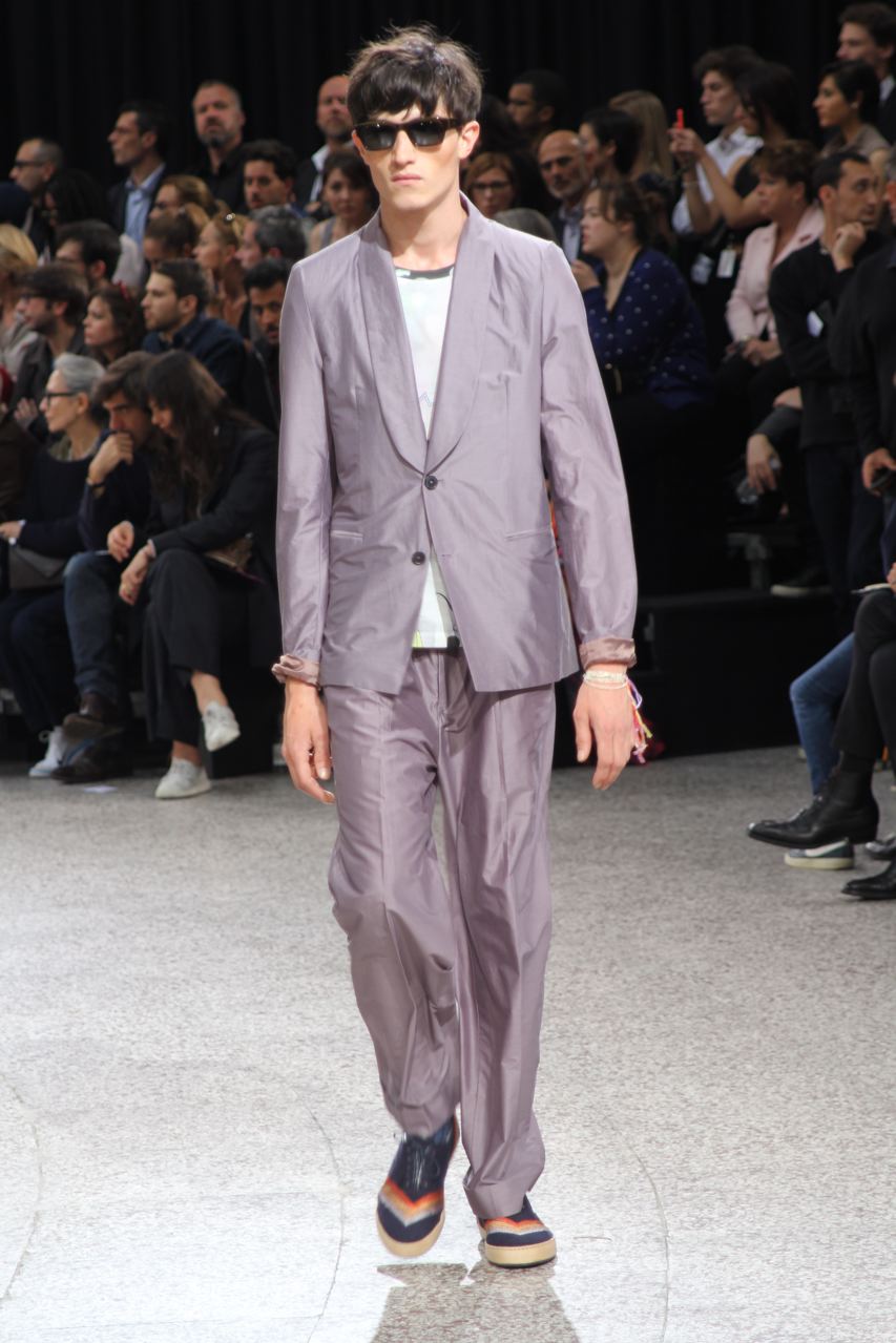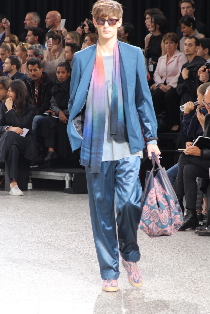 Comme beaucoup d’autres créateurs de mode, Paul Smith s’attache à déconstruire les vêtements conventionnels. L’inspiration de sa collection printemps été 2015 est l’ouverture de la biennale de Venise, quand artistes et galeristes descendent le Giardini. Ils s’approprient les codes des tenues traditionnels à leur manière, de façon créative : Les revers des vestes de smoking recouvrent des T-shirts, des vestes de costumes n’ont pas de bouton. Les vestons sont longs et associés à des pantalons amples, parfois zippés à la cheville, des shorts en satin. Beaucoup de pantalons sont semblables à des pyjamas ou à des joggings. Les coloris sombres, bleu marine et gris foncés sont compensés par des éclats pêche ou verts ou des effets tie&die, des illustrations botaniques et des rayures arc-en-ciel.