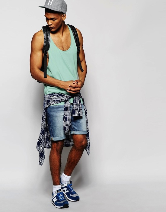 Asos : Débardeur vert d’eau et short en denim