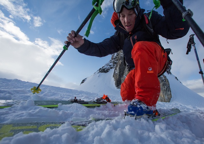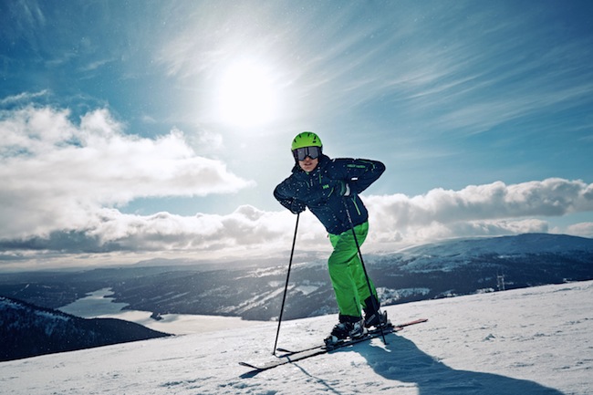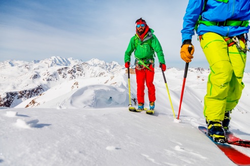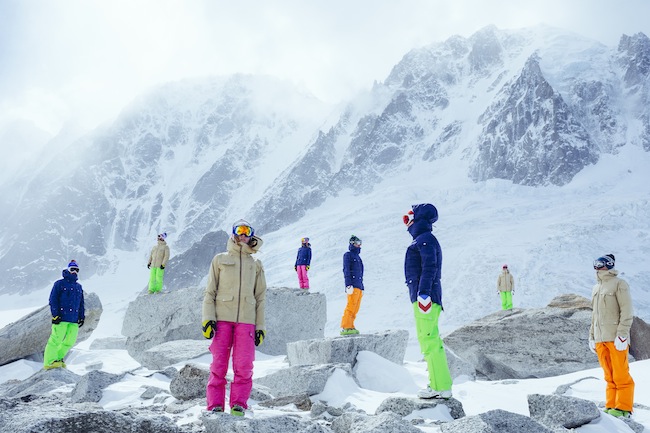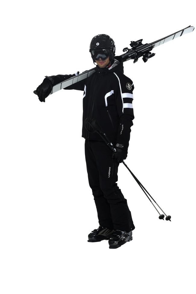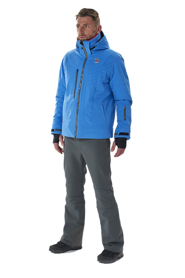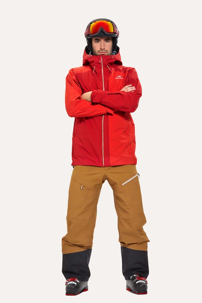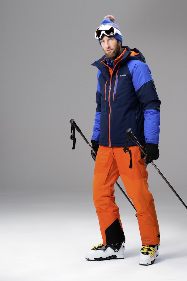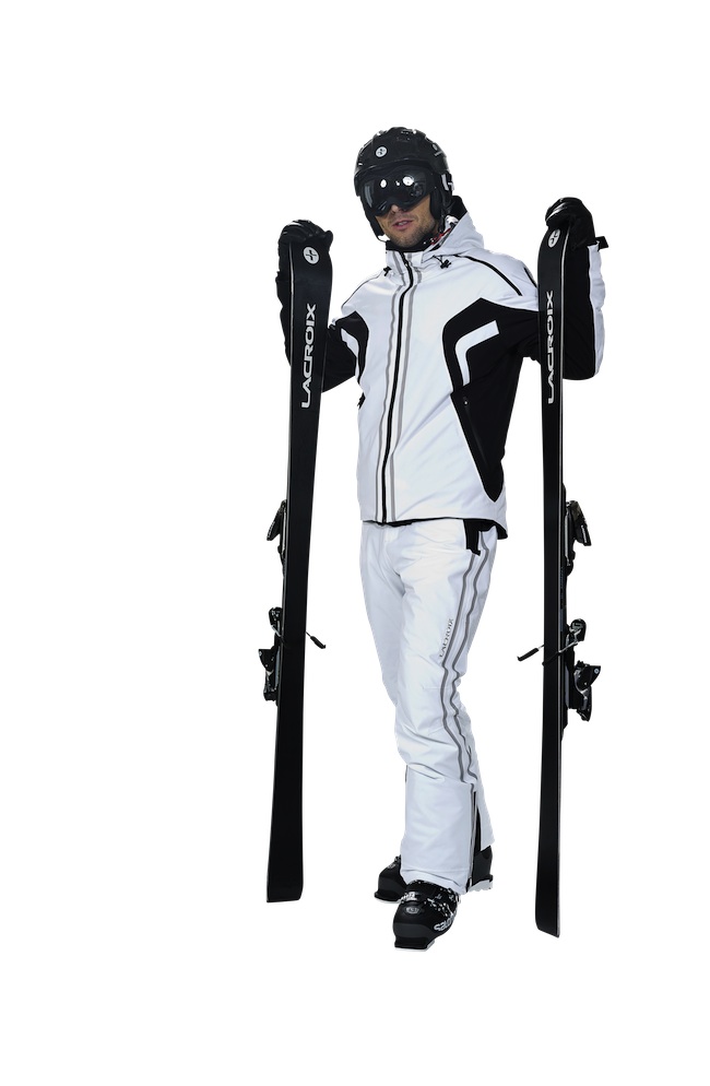 Cet hiver, les tenues de ski pour homme sont très sobres, le plus souvent dans des couleurs unies et vives, parfois fluo, avec un contraste fort entre le blouson et le pantalon.