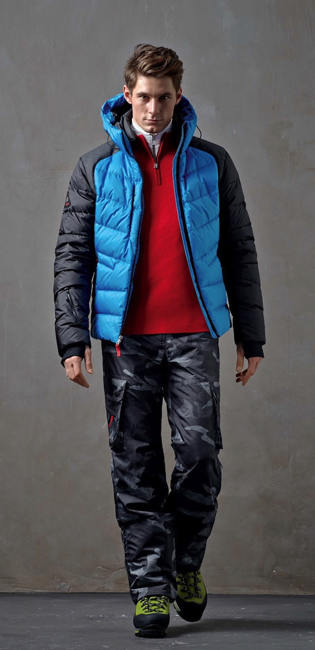 Beaucoup de bleus et de rouges, qui est une couleur très forte de la mode homme depuis l’été 2015. Les marques très haut de gamme misent plutôt sur des tenues d’une seule couleur sombre ou blanche. Voir l’article sur la mode sur les pistes de ski hiver 2016-2017.