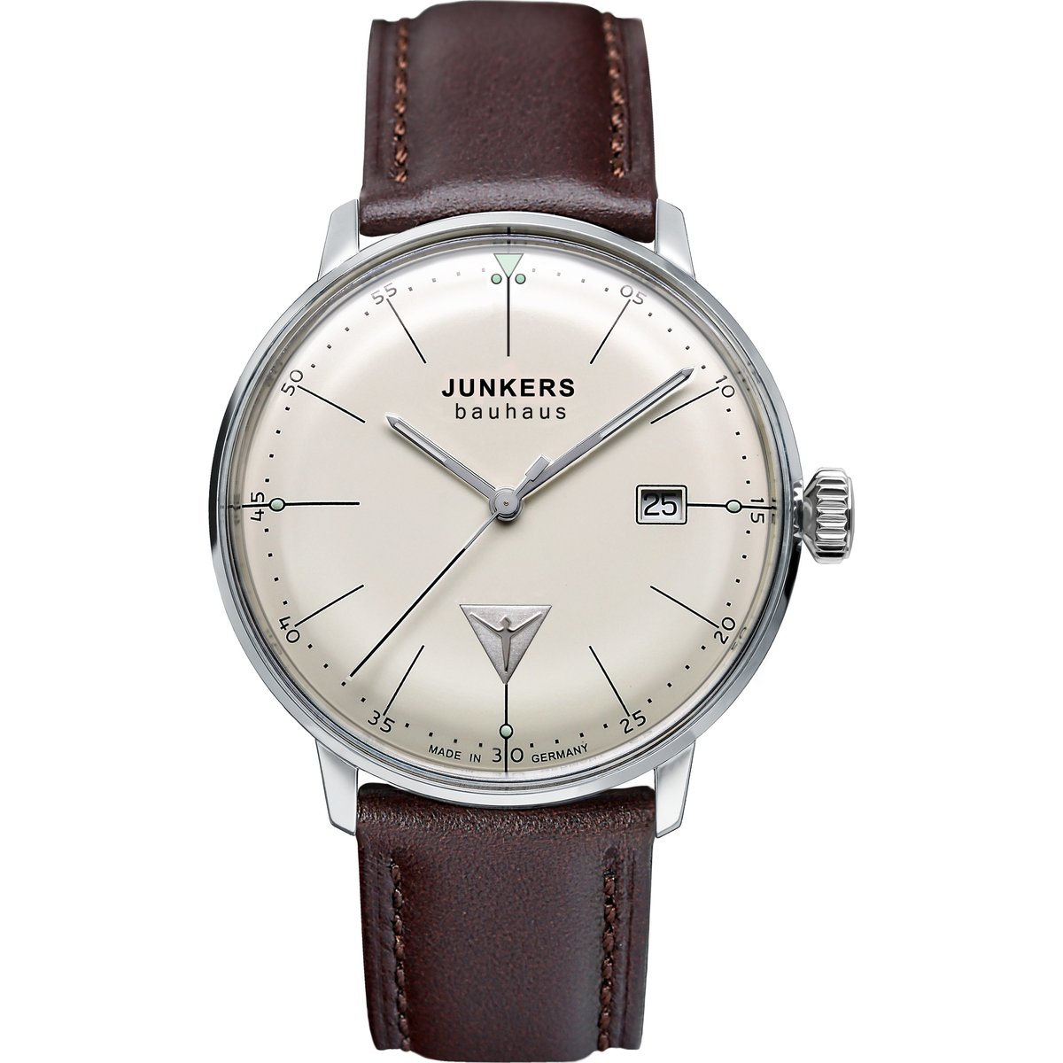 Cette ligne de montres de la marque Junkers porte le nom du Bauhaus, école et courant artistique allemand du début du 20ème siècle mêlant architecture, art plastique et peinture et laissant une totale liberté d’expressions artistiques et artisanales. Mouvement à Quartz.