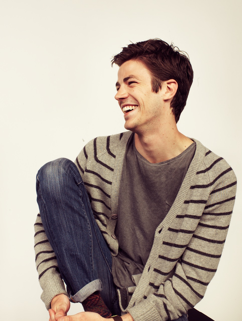 Soit dans un look débraillé avec une chemise ou un t-shirt plus long que le gilet et qui va dépasser par dessous. Comme Grant Gustin, l’acteur de la série The Flash adaptée de DC Comics.