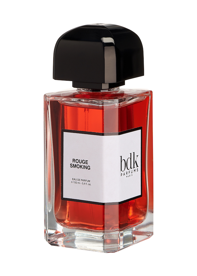Un accord cerise avec en notes de tête de la bergamote d’Italie et des baies roses compose Rouge Smoking de BDK parfums, qui est mixte. En cœur : absolu de vanille noire, héliotrope. En fond : ambroxan, cashmeran, fève tonka, labdanum, muscs blancs.