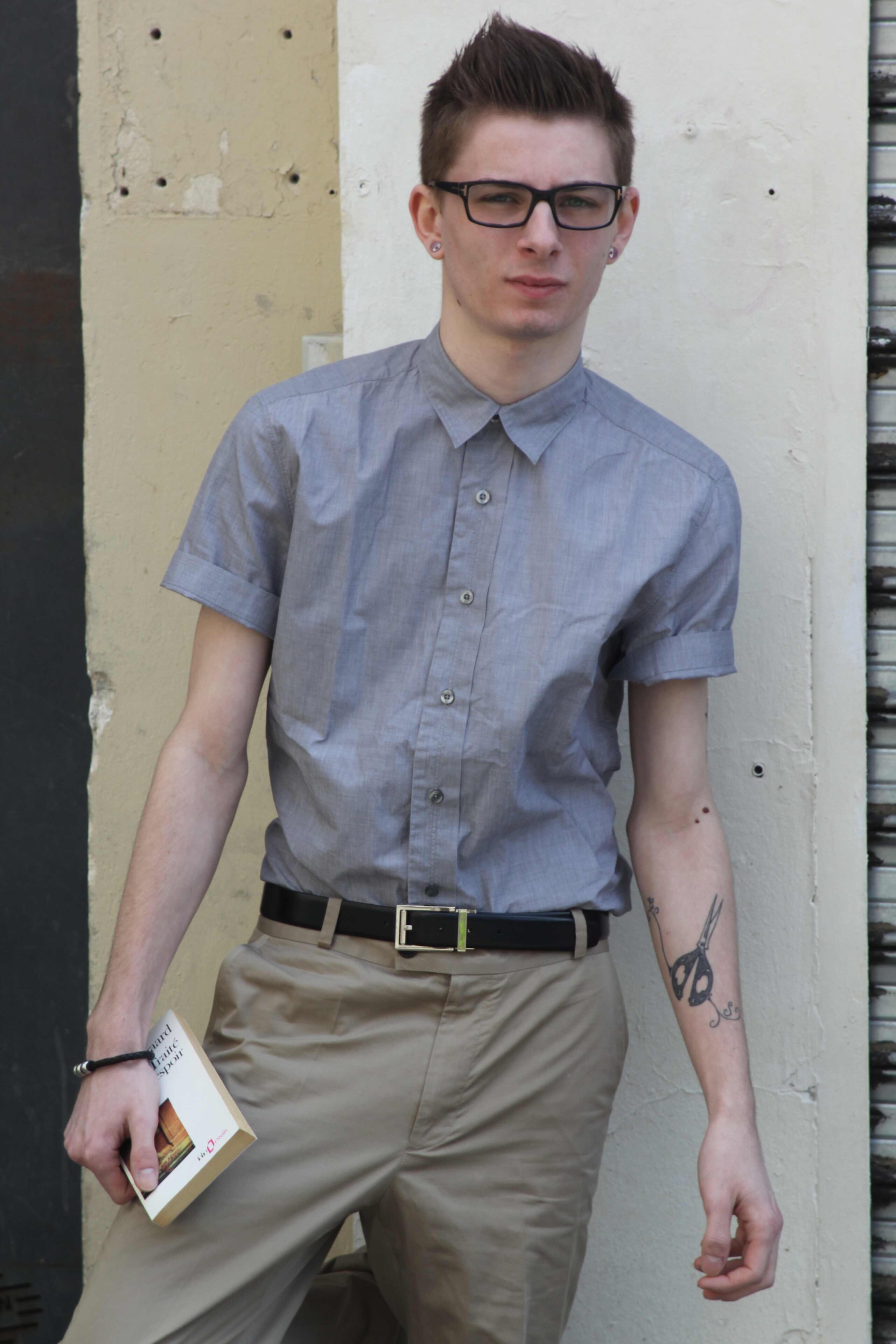 Les vêtements sont un langage qui permet de dire aux autres qui l’on est : un sage étudiant ou un mauvais garçon… Exemple avec Kevin qui a bien voulu jouer le mannequin.