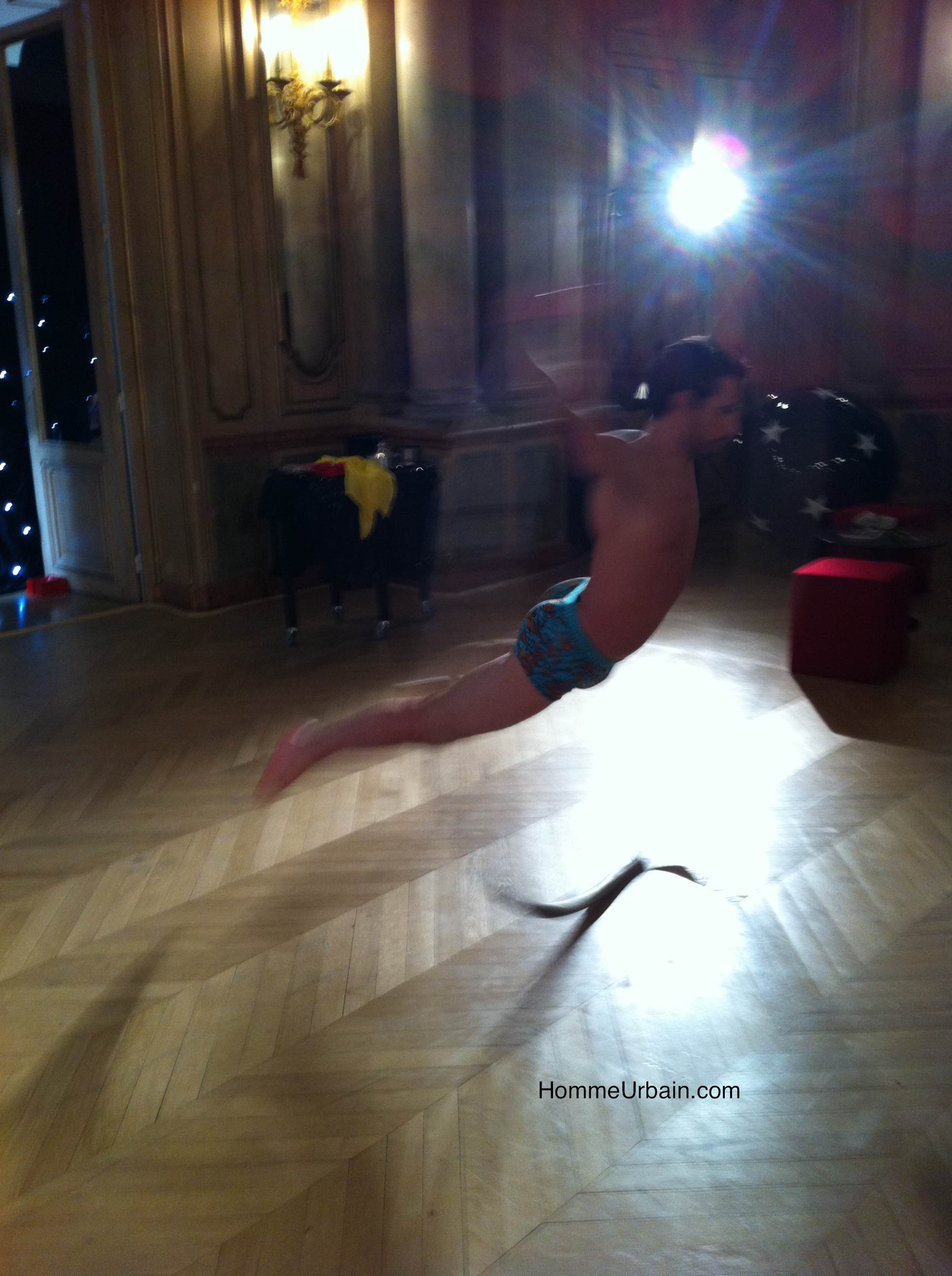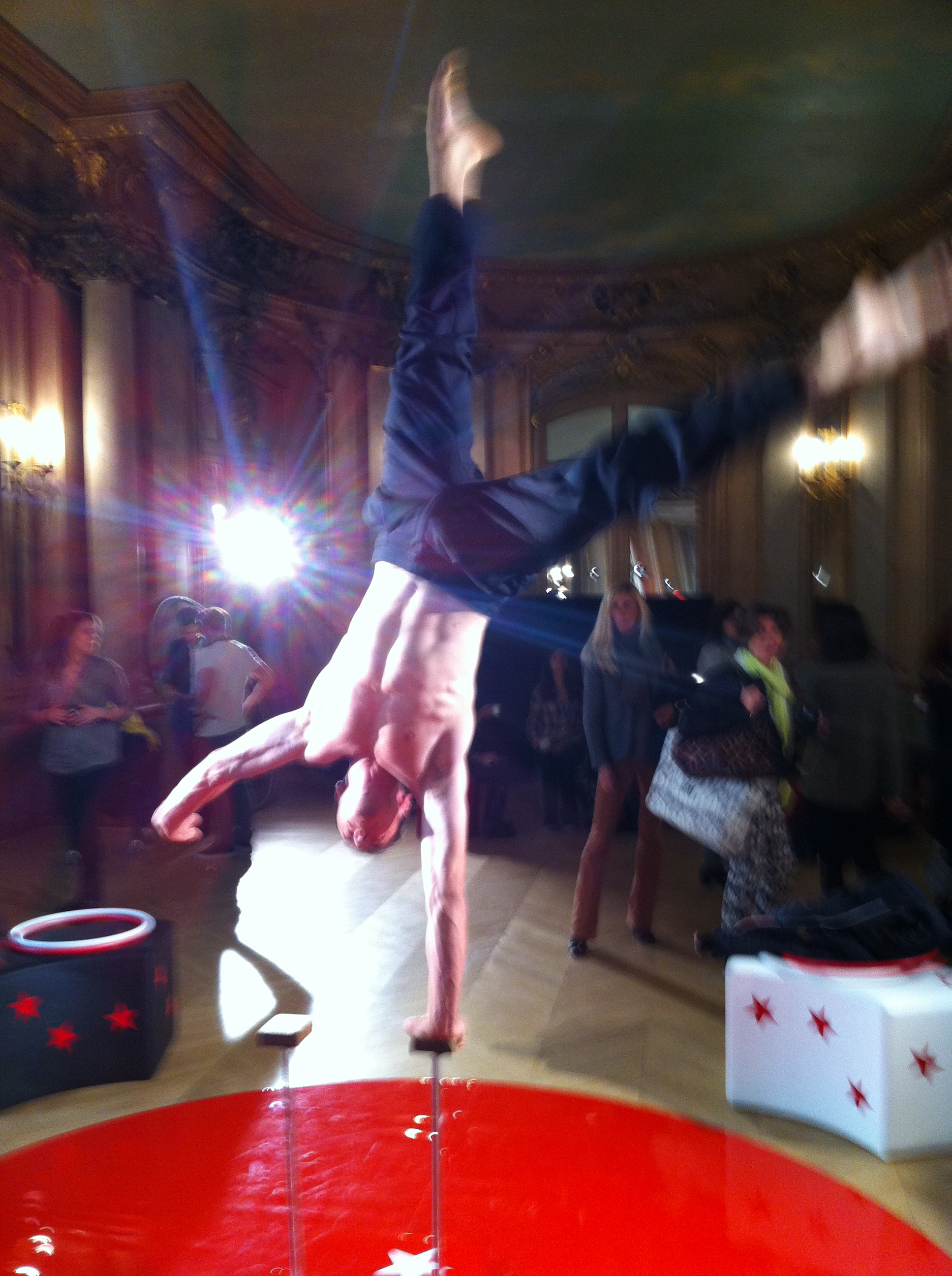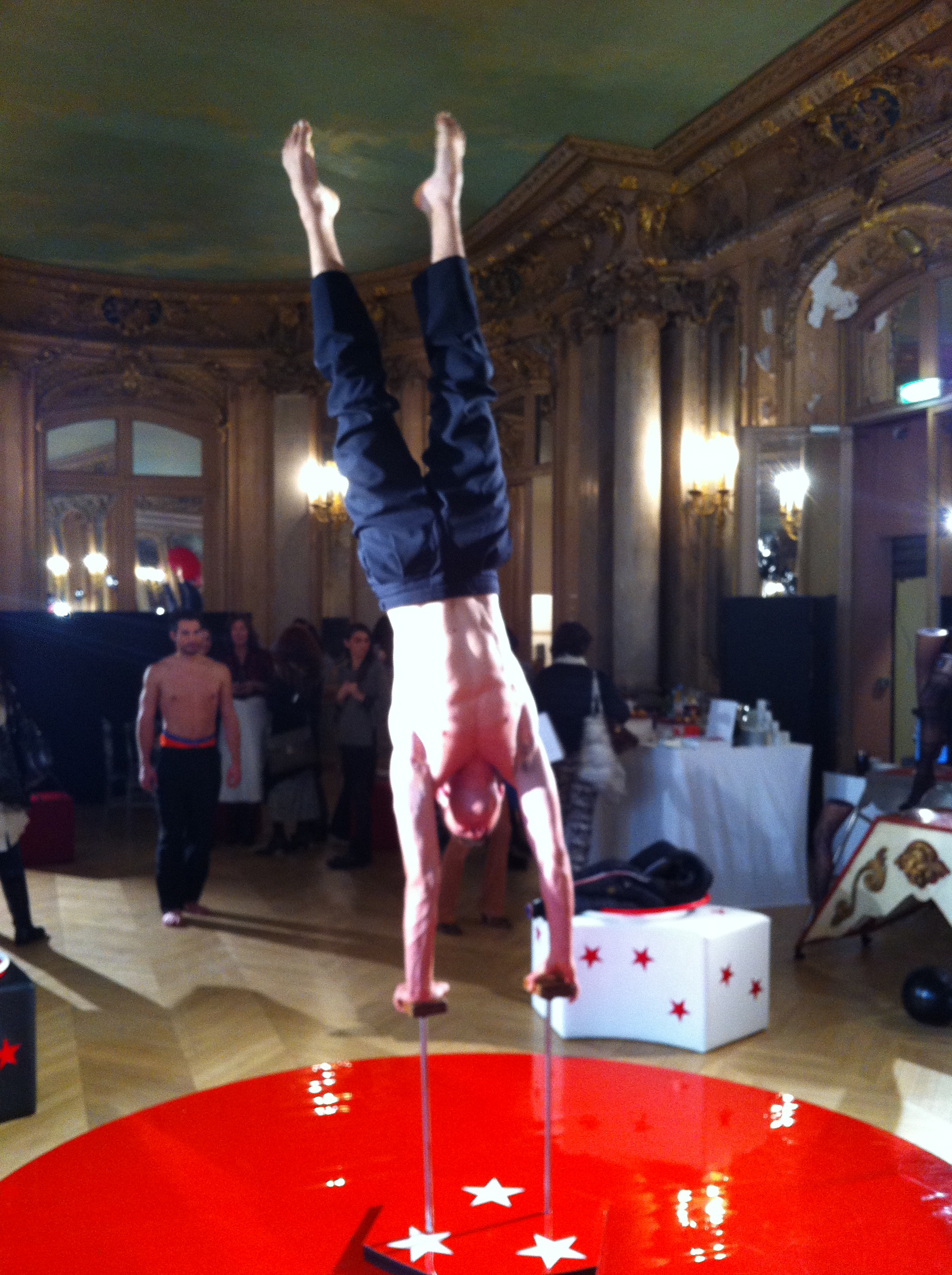 Dim présente une collection sur le thème du cirque. J’ai pris quelques photos lors de la présentation presse, avec jongleurs, trapézistes, acrobates, magiciens et charmeuses de serpents, mais avec mon iPhone, elles sont donc toutes floues… Des boxers unis, noirs, rouges et bordeaux.