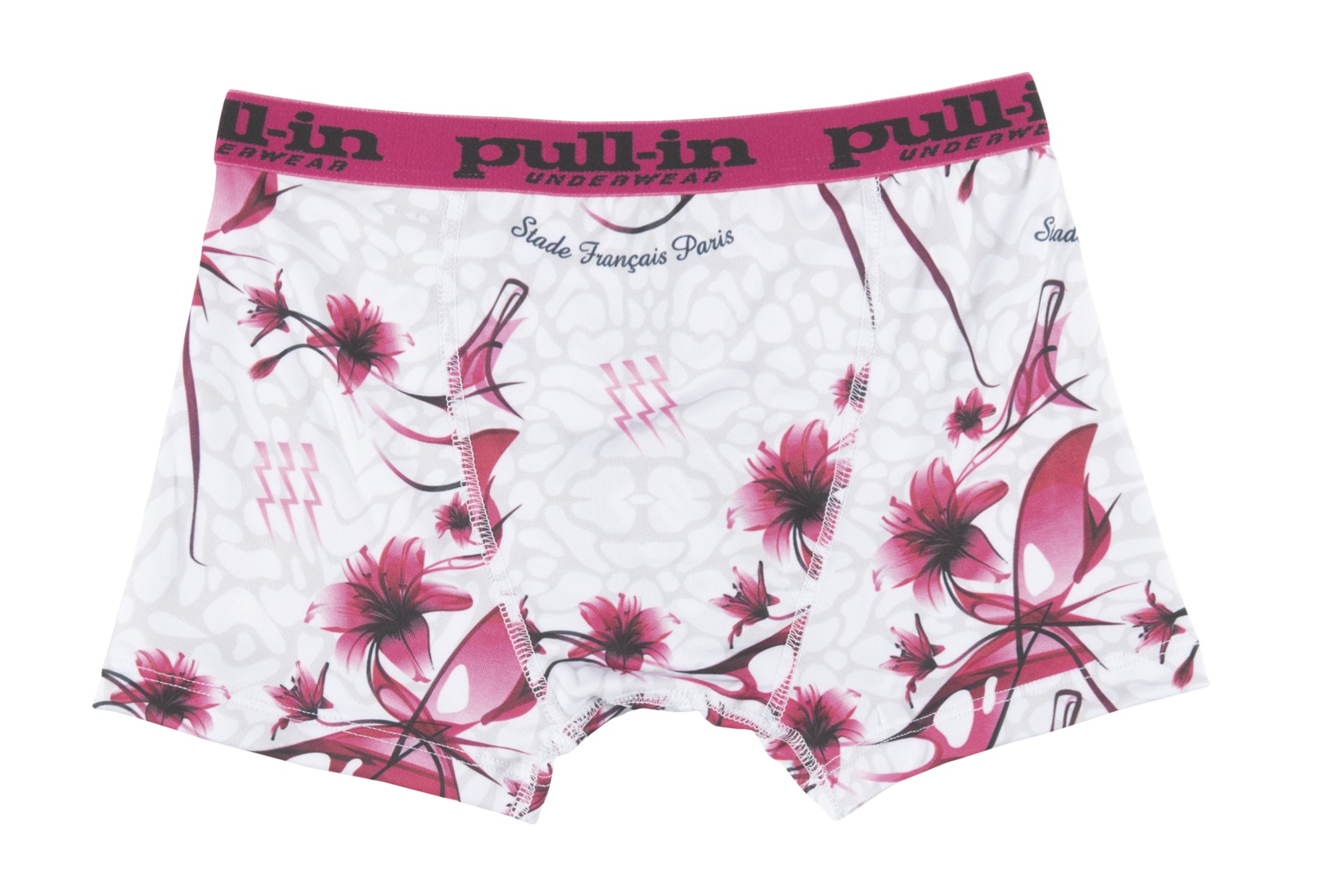 Pull-in, la marque basque a noué un partenariat avec le Stade français et reprend les motifs de cette équipe de rugby sur des boxers.