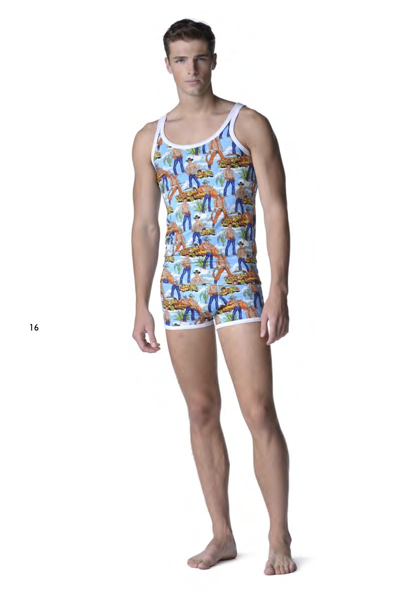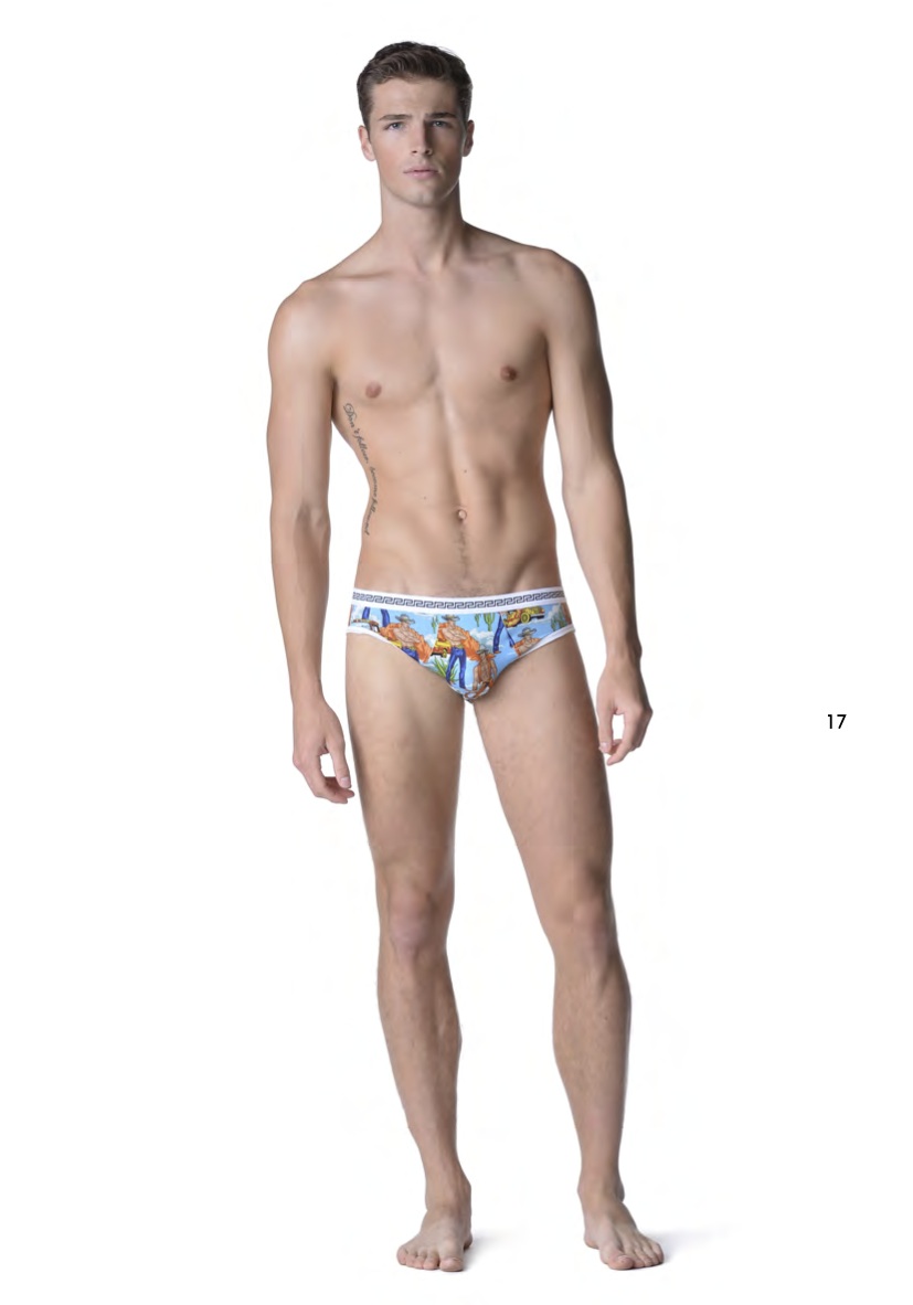 Parmi les marques de luxe, la mode est plutôt aux mini slips comme chez Versace et DSquared2. La marque italienne propose des modèles unis blancs et noirs, un imprimé à petit coeur et un autre avec des dessins de cowbows torse nu en jean ou en chaps et gilet, ce qui rappelle l’iconographie gay à la Tom of Finland. Sacrée Donatella! De son coté, la marque canadienne remet au goût du jour le bon vieux slip kangourou à poche.