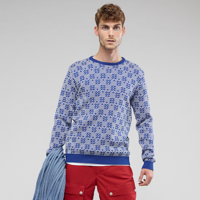 Le plus souvent cet hiver les pulls ont un col rond, très haut placé. On voit plutôt des modèles unis, parfois torsadés, et des jacquards aux petits motifs géométriques. En revanche, assez peu de jacquard traditionnels, ni scandinaves, ni alpins, ni amérindiens.