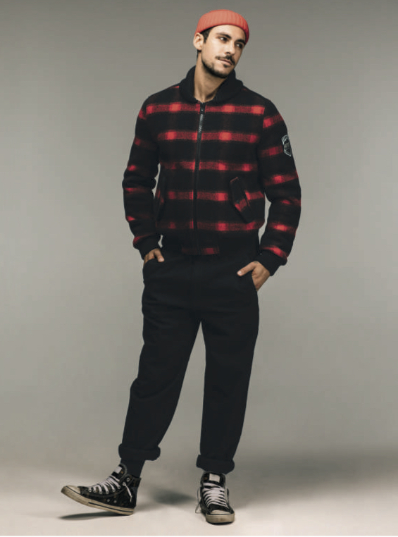 - L’autre couleur que l’on voit beaucoup, c’est le rouge. La couleur de la passion, du sang, de l’interdit, de l’amour, est très présente dans toutes ses variantes, surtout pour les blousons, manteaux et chemises : bombers, chemises et vestes à carreaux noirs et rouges.