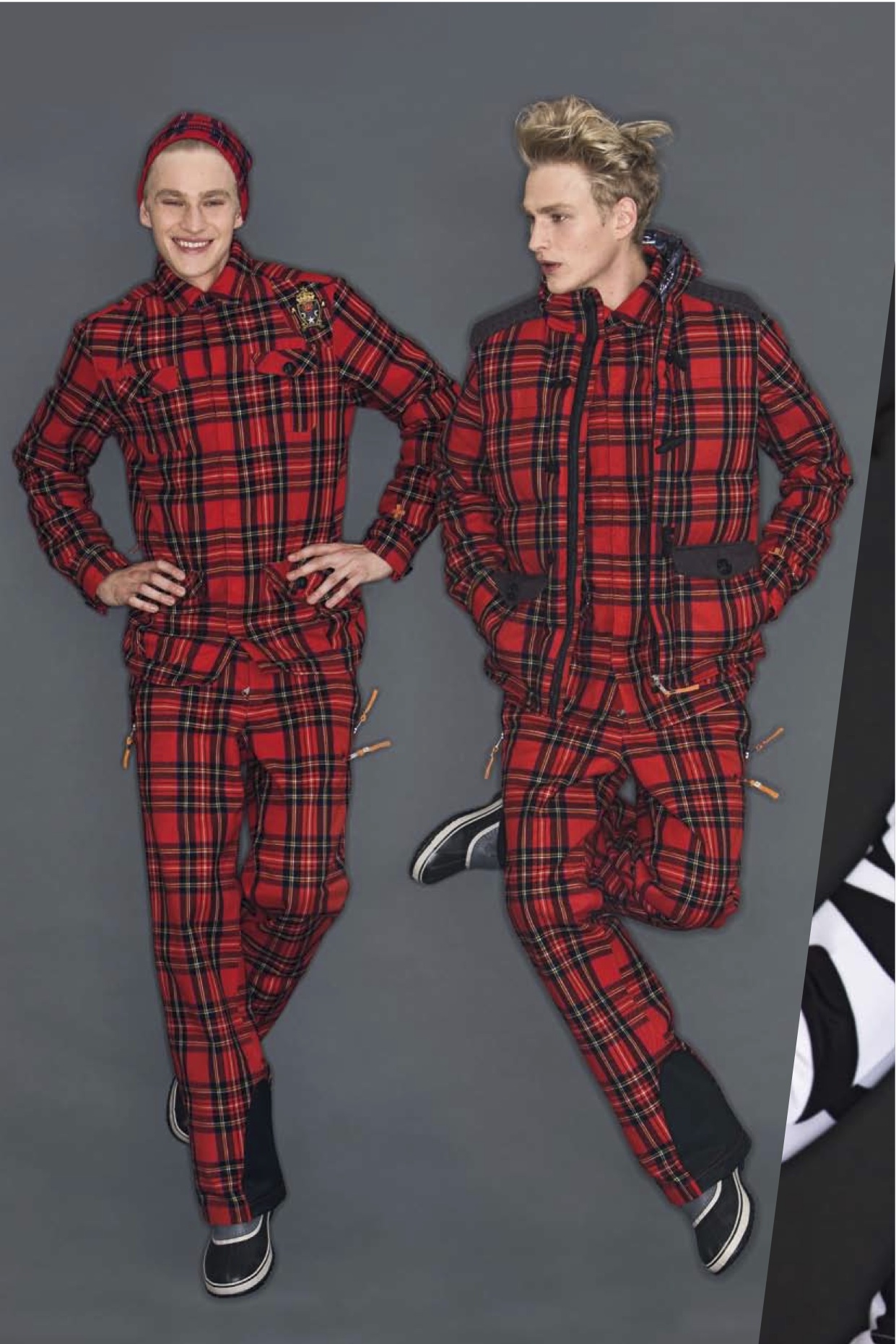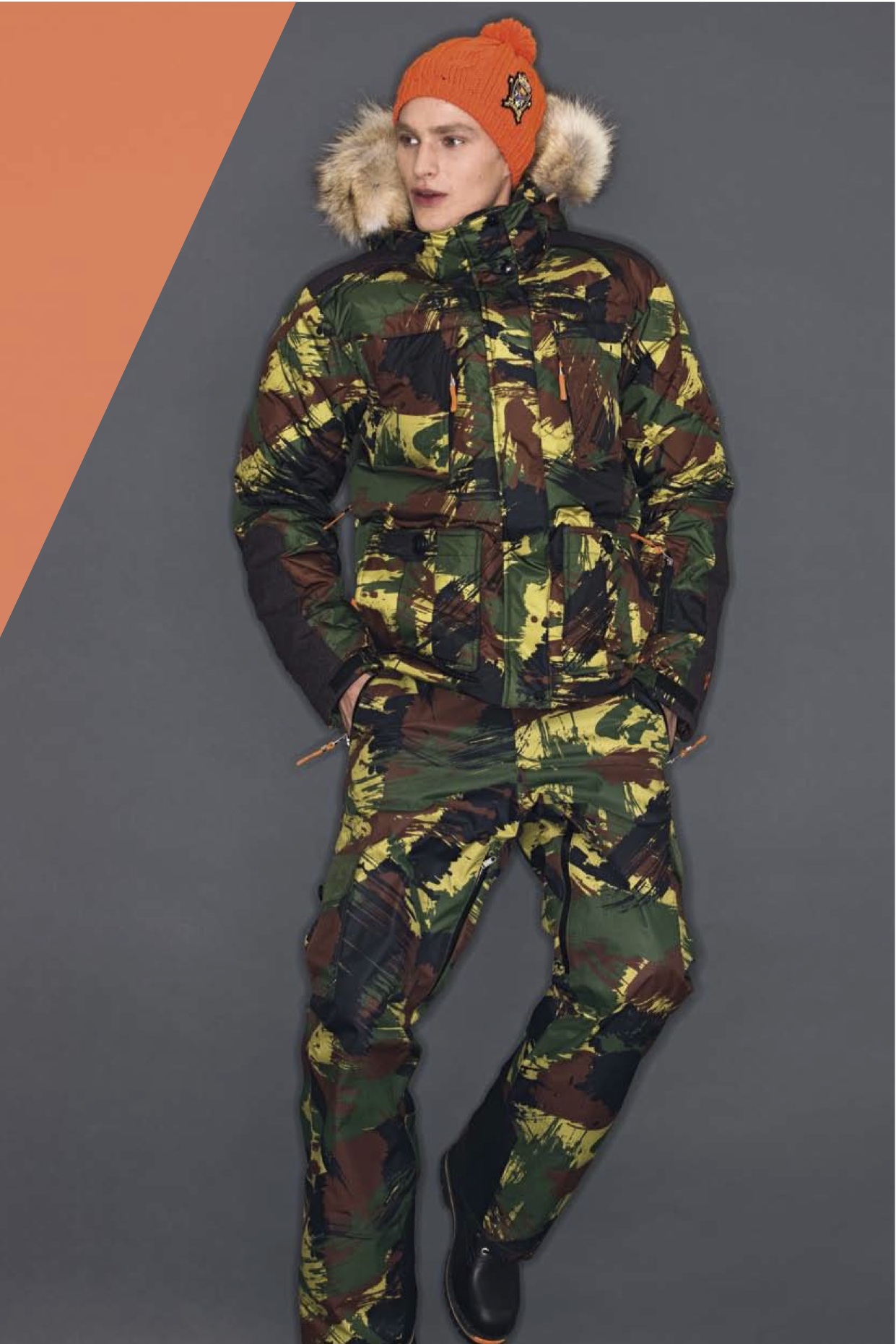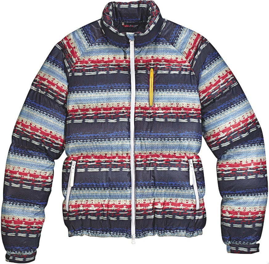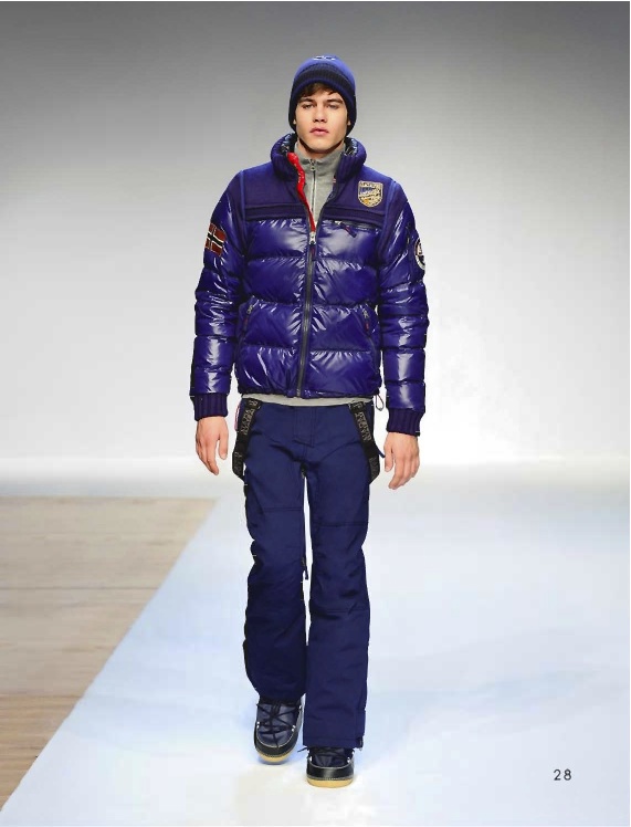 Les blousons et pantalons de ski reprennent la plupart des grandes tendances mode de l’hiver : les carreaux (O’Neil, Rossignol), notamment de type tartan, les motifs camouflage militaire (Rossignol, Bogner), les couleurs vives (Salomon, Adidas, Napapijri), les doudounes fines (Salomon), les doudounes sans manche (Salomon, O’Neill), les motifs jacquard (Gaastra), les tenues qui rappellent celles des super-héros (Helly Hansen). A celles-ci s’ajoute quelque chose de plus spécifique : les imprimés graphiques (Salomon, Protest, Henjl). Importables en ville, mais sur les pistes, ça passe au contraire très bien.