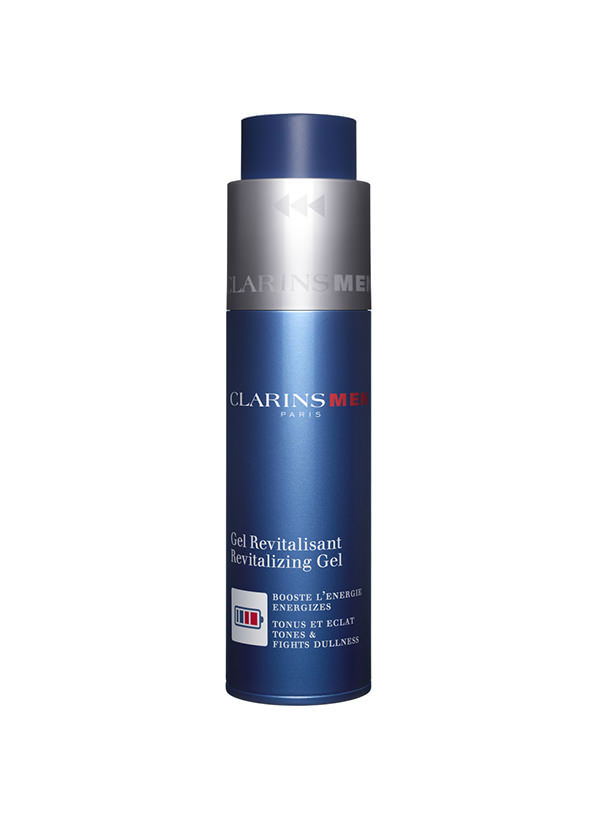 Le gel revitalisant ClarinsMen contient des extraits d’herbe à bison, de gymnéma et de baie de goji bio qui selon Clarins boostent le renouvellement cellulaire. Des peptides d’avocat et polyoses d’avoine bio pour lisser les ridules. Un complexe d’acide hyaluronique pour hydrater. Du gluconate de zinc et de la poudre de tapioca pour matifier la peau. Et un complexe « secret » anti-pollution.