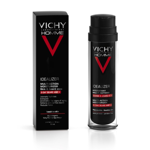 L’idealizer Barbe 3 jours et + de Vichy contient de l’acide hyaluronique pour repulper. De l’adénosine qui atténue et réduit les premiers signes de l’âge. De la caféïne pour action stimulante et énergisante. De la calmosensine. Et de l’acide salicylique qui favorise l’élimination des cellules mortes.