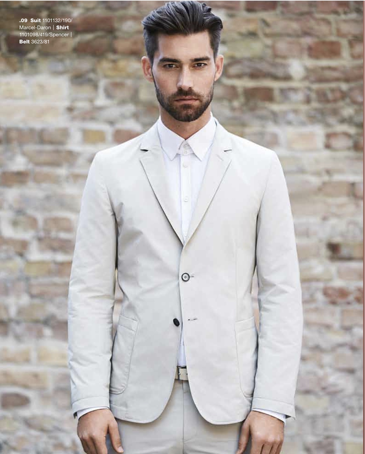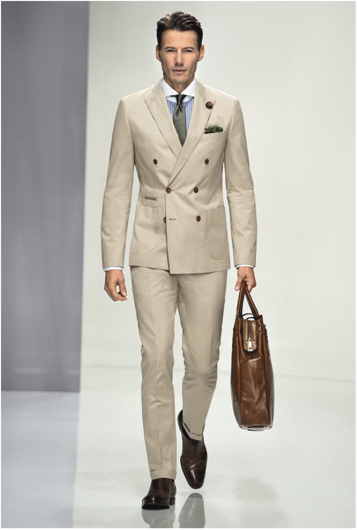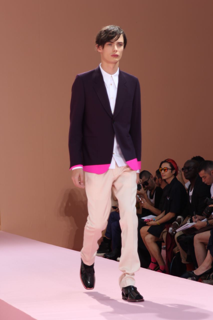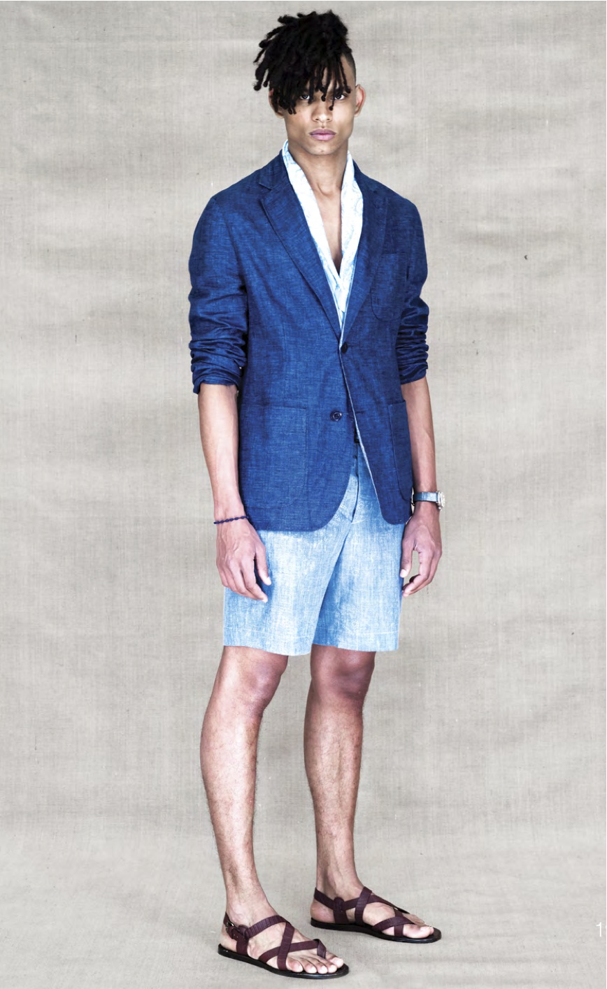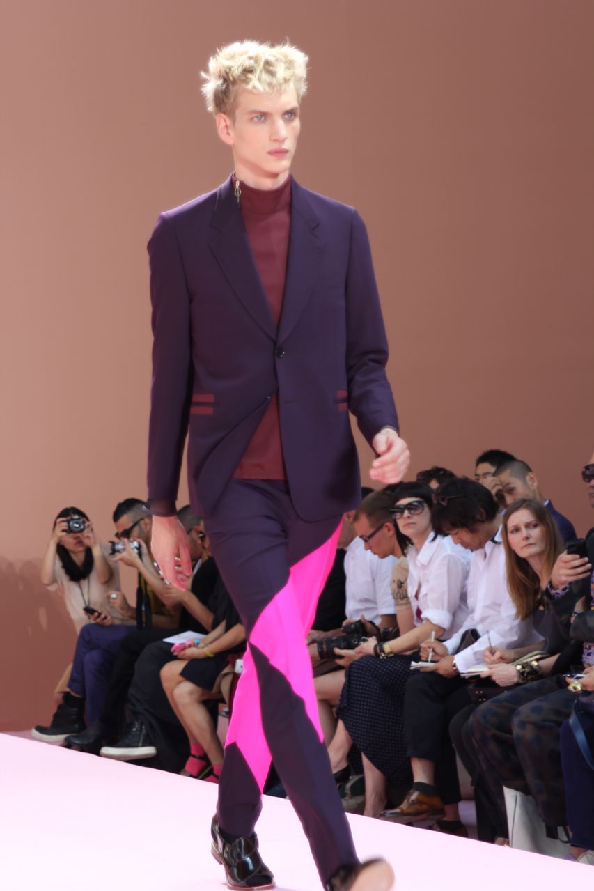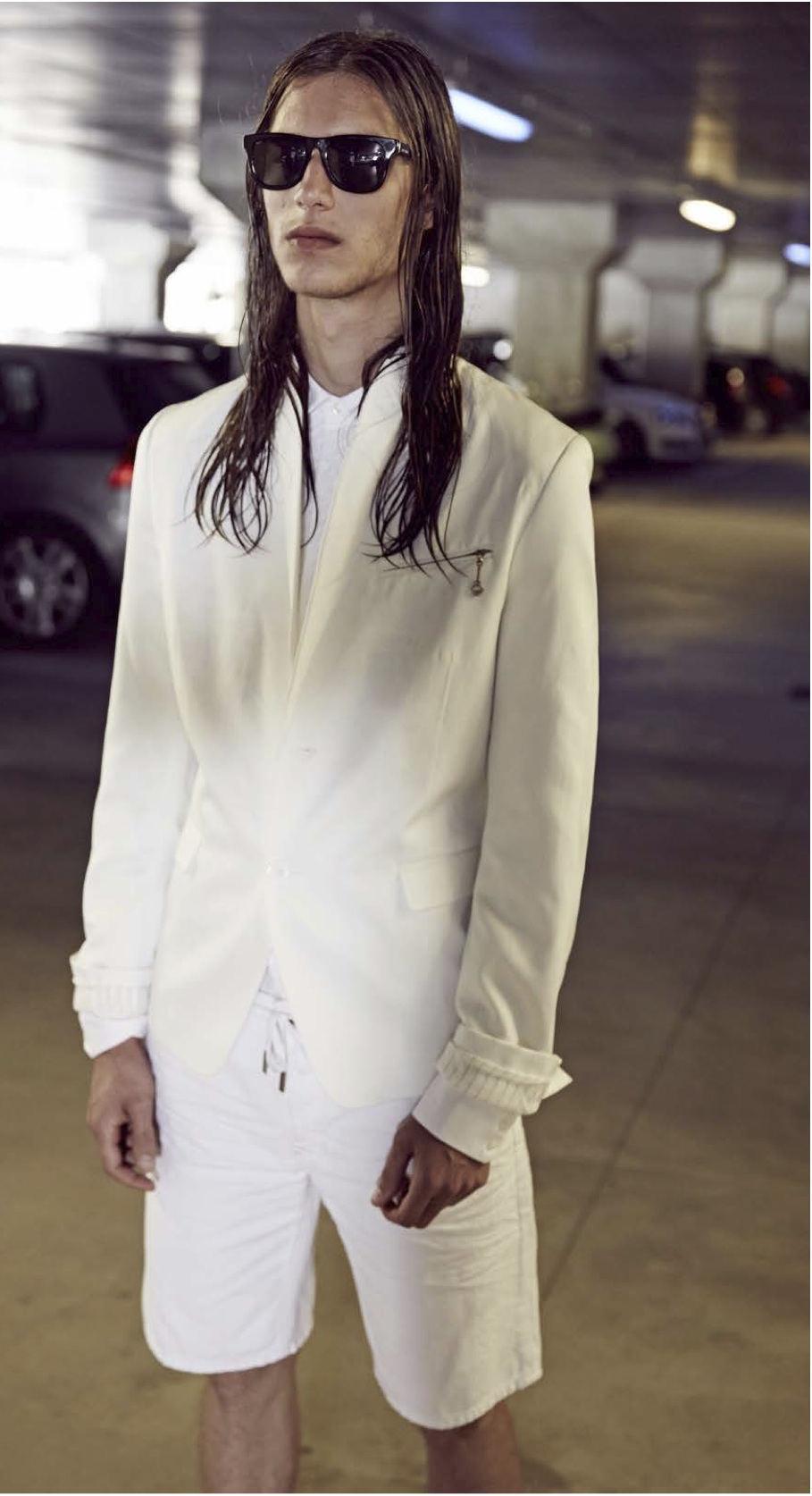 Le point commun des vestes de l’été 2014, c’est la fermeture à 2 boutons. La version à un bouton concerne surtout les tenues de soirée et vêtements de prestige comme les smokings. Dans les photos ci-dessous, vous pouvez remarquer que presque toujours seul le bouton du haut est fermé, pour une allure décontractée. Certaines vestes ont une fermeture croisée à la façon des blazers. Les tissus sont en général assez rigides avec une coupe ajustée, près du corps. Dans ce cas, les vestes sont longues : elles arrivent jusqu’à la fourche du pantalon. Pour une allure plus estivale, certaines sont au contraire faite d’un tissus souple, léger et dans des tons clairs. Dans ce cas, la coupe est plus courte. Parfois la veste s’arrête au niveau de la ceinture. Les tissus sont colorés, très peu de noirs et de gris, mais du violet, du bordeaux, du vert, toutes sortes de bleus, du beige.
