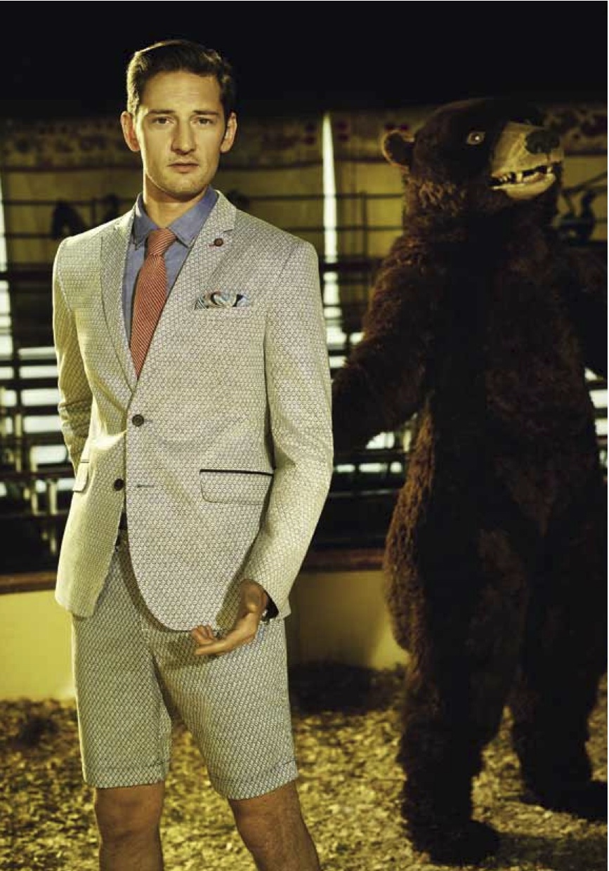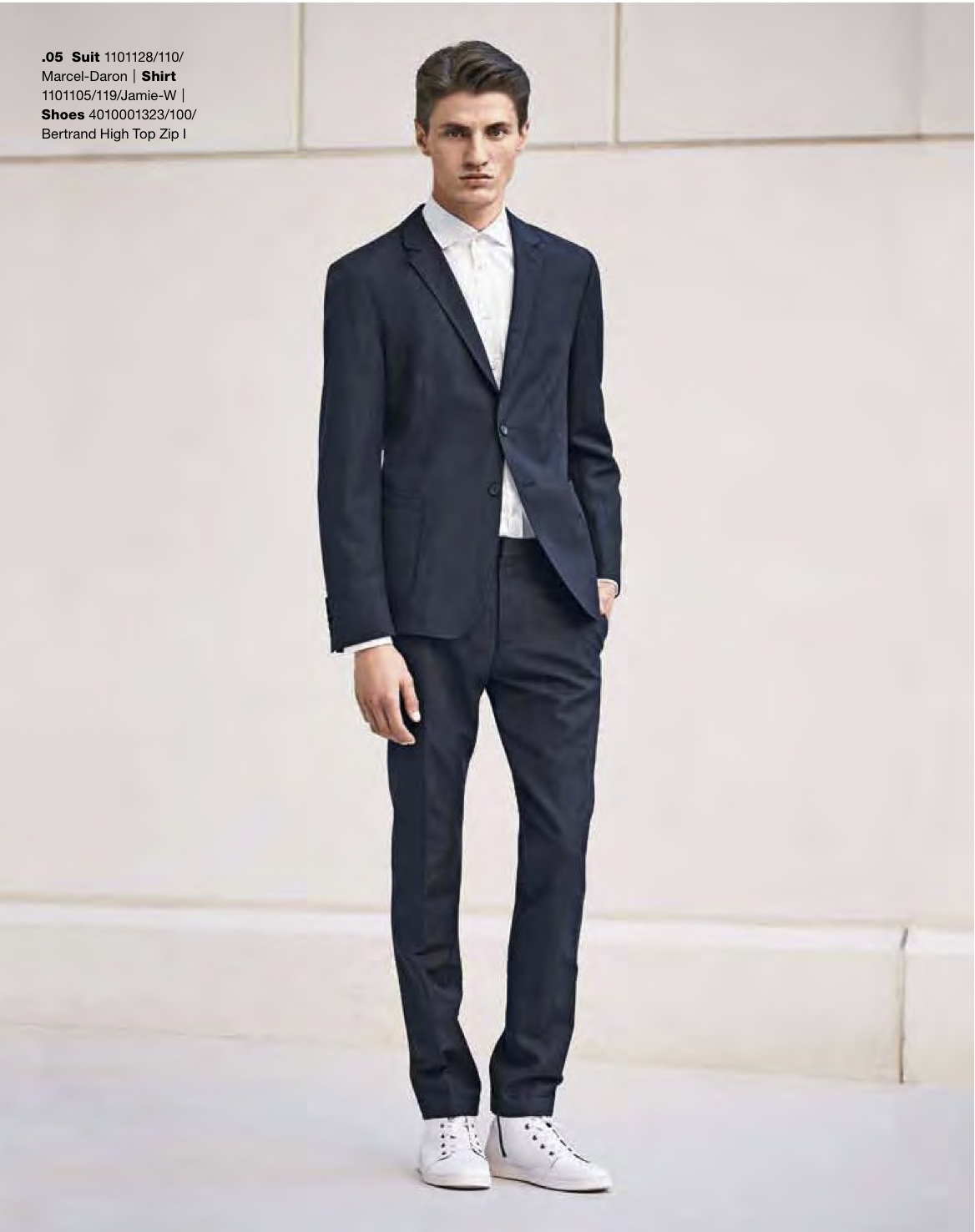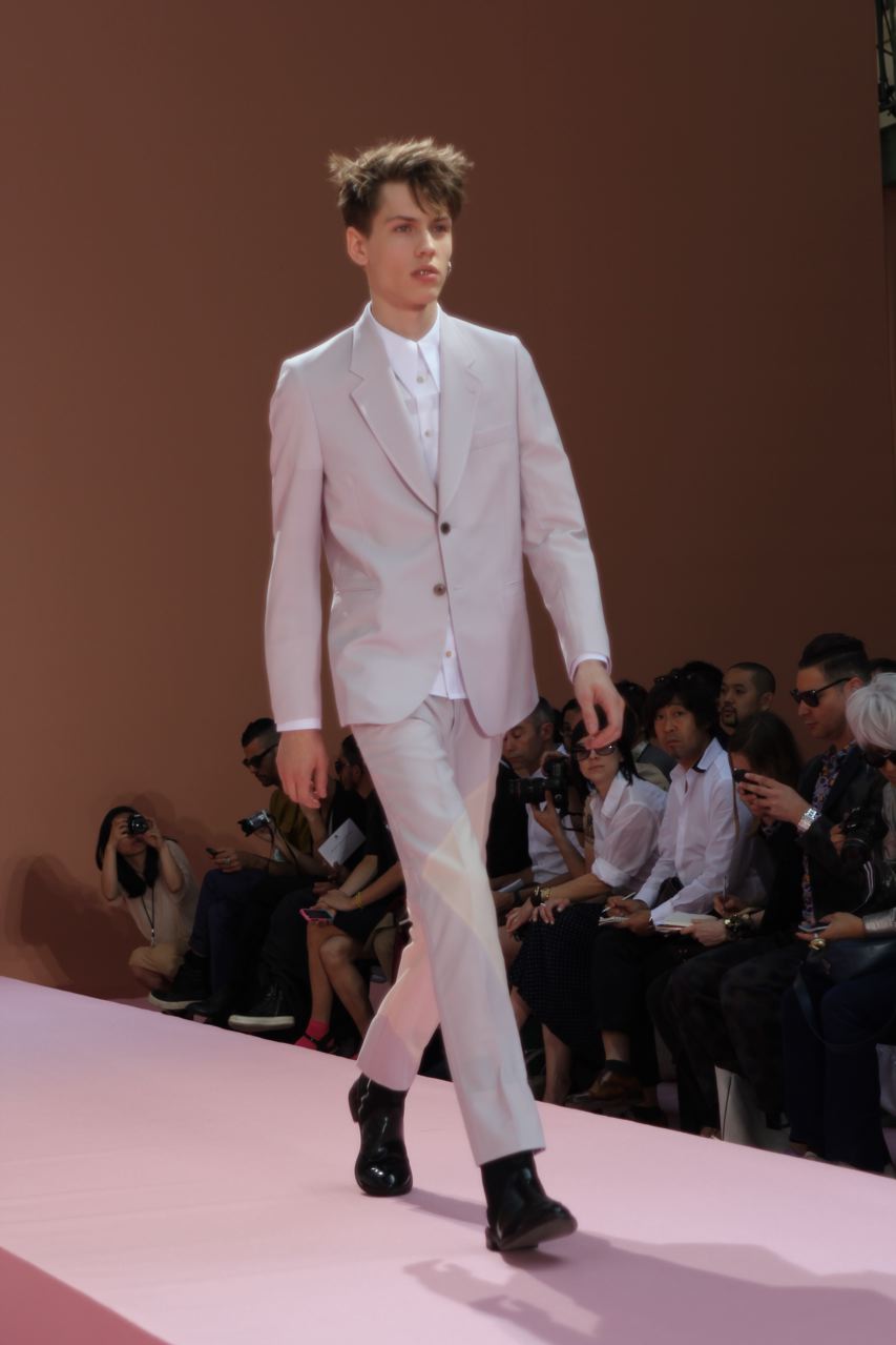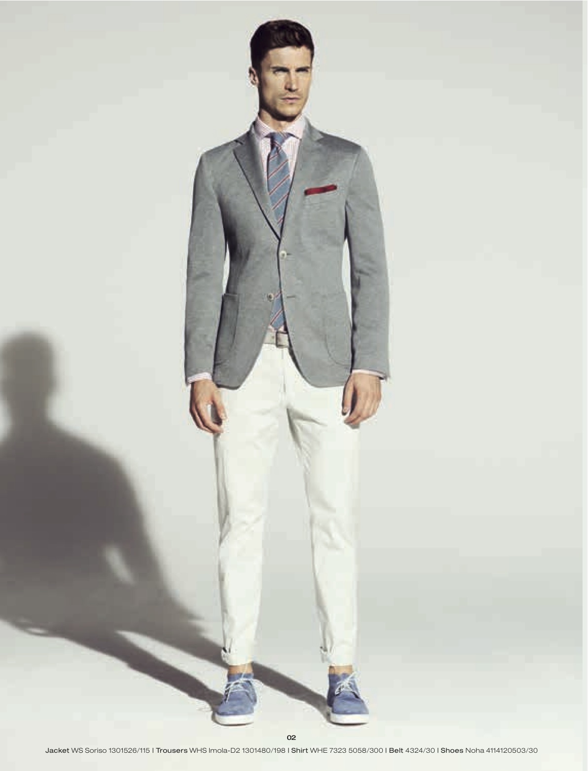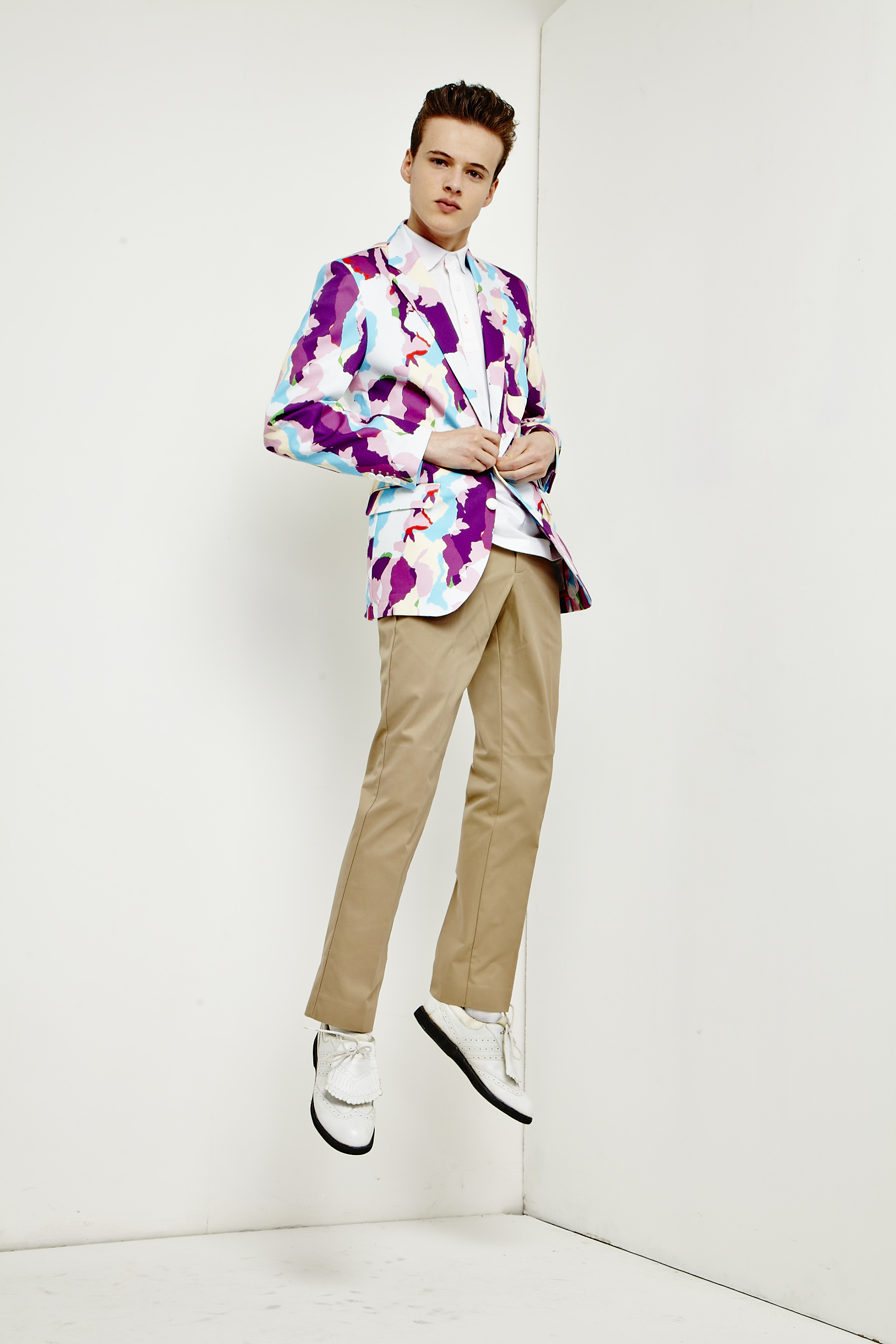 Le point commun des vestes de l’été 2014, c’est la fermeture à 2 boutons. La version à un bouton concerne surtout les tenues de soirée et vêtements de prestige comme les smokings. Dans les photos ci-dessous, vous pouvez remarquer que presque toujours seul le bouton du haut est fermé, pour une allure décontractée. Certaines vestes ont une fermeture croisée à la façon des blazers. Les tissus sont en général assez rigides avec une coupe ajustée, près du corps. Dans ce cas, les vestes sont longues : elles arrivent jusqu’à la fourche du pantalon. Pour une allure plus estivale, certaines sont au contraire faite d’un tissus souple, léger et dans des tons clairs. Dans ce cas, la coupe est plus courte. Parfois la veste s’arrête au niveau de la ceinture. Les tissus sont colorés, très peu de noirs et de gris, mais du violet, du bordeaux, du vert, toutes sortes de bleus, du beige.